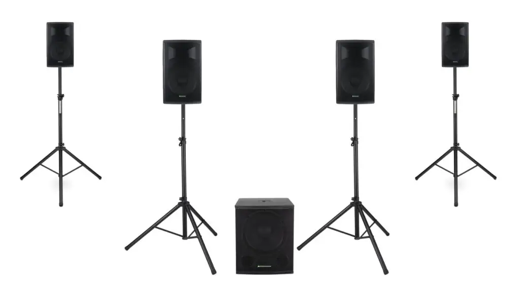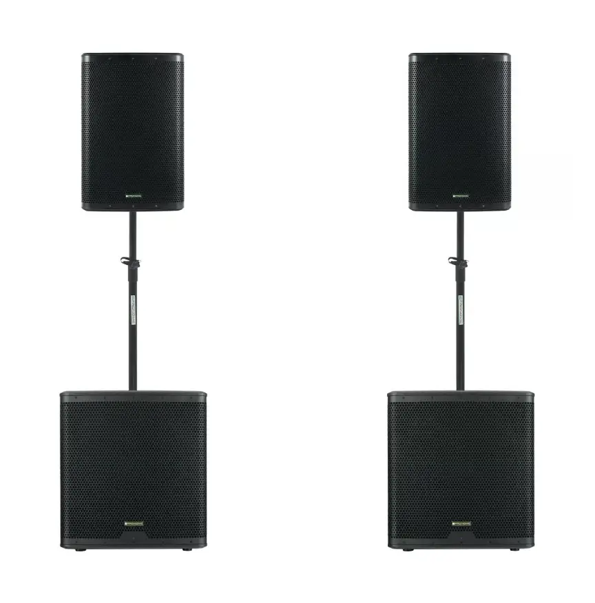 Subwoofer: Bestückung: 18″ Tieftöner Leistung: ca. 600 W RMS Frequenzgang: bis ca. 35–40 Hz → kräftiger Tiefbass